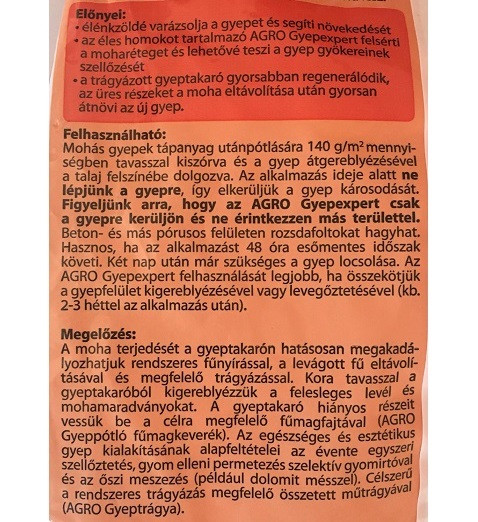 hatására a moha kiszárad, így könnyen eltávolítható a gyepes területrõl.