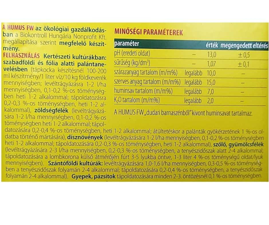 tápanyagokat. A HUMUS FW alkalmazásának eredményeképpen javul a termés minősége