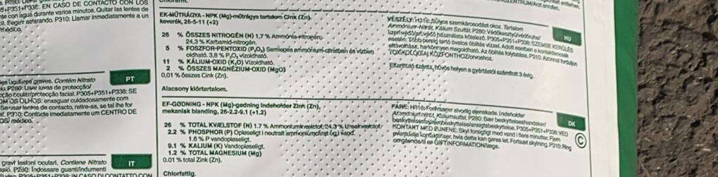 Összetétel: NPK 26-5-11 + 2 MgO + mikroelemek